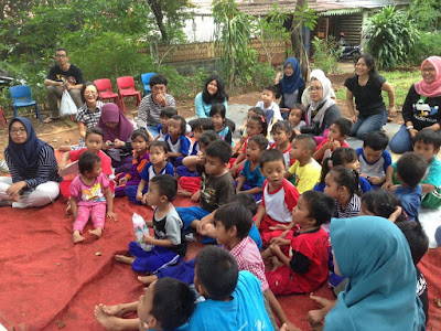 Sungguh menyenangkan menghabiskan waktu bersama anak anak. Cara mereka berpikir yang simple dan bahagia dengan hal hal sederhana. Memang betul, ada yang bilang di umur seperti saya sekarang untuk menjaga keseimbangan berpikir, merasa dan bersikap yaiu dengan cara lebih banyak bergaul/bersosialisasi dengan anak anak dan lansia. Sempet berbincang dengan seorang teman dan menanyakan alasan dia untuk bergabung di komunitas ini apa? Dengan enteng dia menjawab, bermain bersama anak anak dia merasa kembali pada masa itu. Menyenangkan. Penghilang stres. Katanya seperti itu.